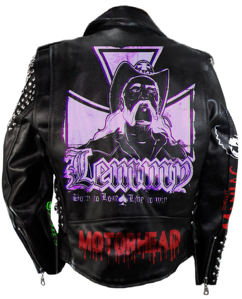 Bomber Black Cow Leather Jacket Men, Motorhead Lemmy Patchwork, Handmade Studwork Spiked, Iron Maiden Clothing, Rivets Studded Jacket,