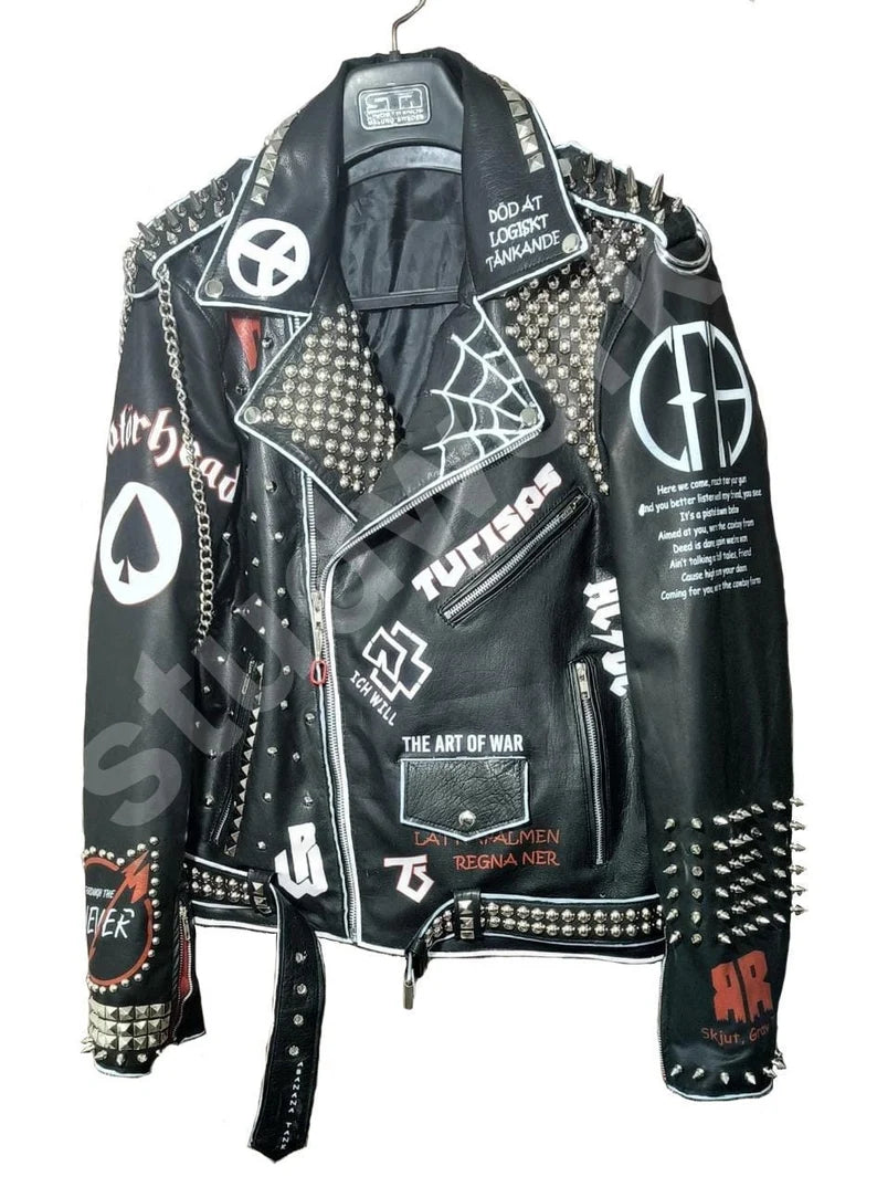 Brando Handmade Steampunk Heavy Metal Studded Real Leather Gothic Patches Bachelor's Party Jacket