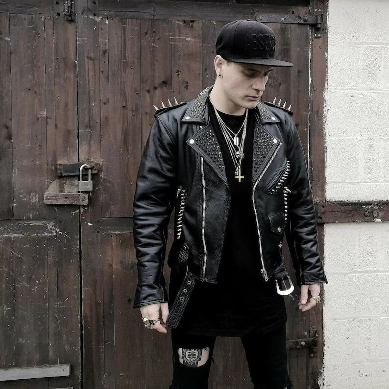 Brando Pin Spiked Studded Shoulder Epaulettes, Men's Customize Outfit, Solid Steampunk Studded Fashion Jacket, Men's Waist Belted Jacket,