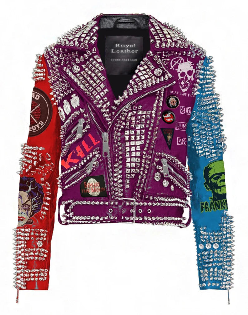 Bride of Frankenstein Gothic Patches Jacket, Steampunk Studded with Dead Kennedy, Punk Rock Biker's Handmade Fashion, Spike Leather Jacket,