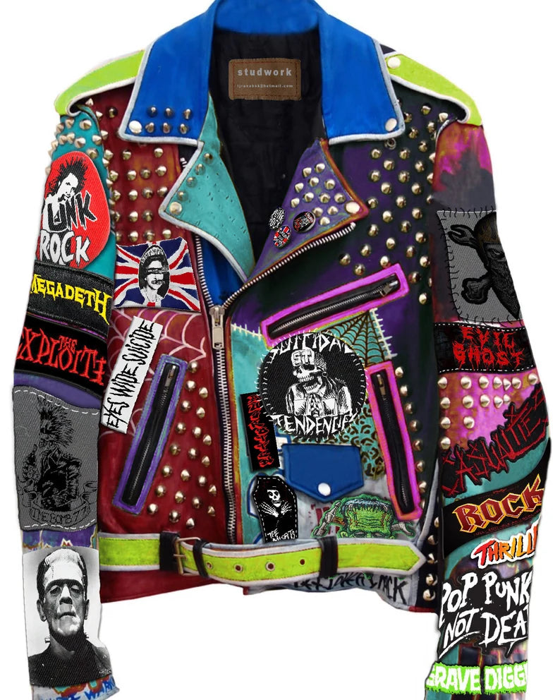 Adorn your ensemble with an eclectic mix of patches, from the iconic Sex Pistols and Misfits to the edgy Eyes Wide Suicide and more, creating a personalized style statement that resonates with rebellious authenticity.