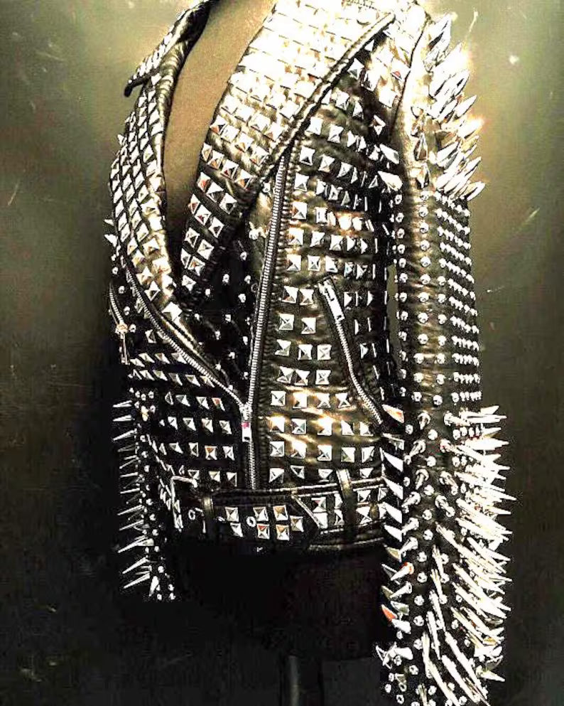 Made to order Hell Raiser leather Full metal studded spiked black biker Punk jacket (699) Stud and spike jacket party wear fashion