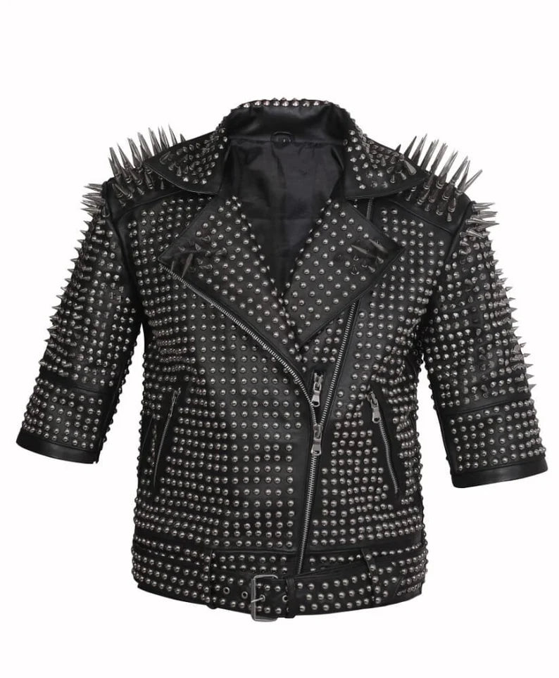 Men’s Gothic Biker Leather Jacket – Brando Style with Long Spikes, Silver Studded Moto Fit, Custom Steampunk Fashion