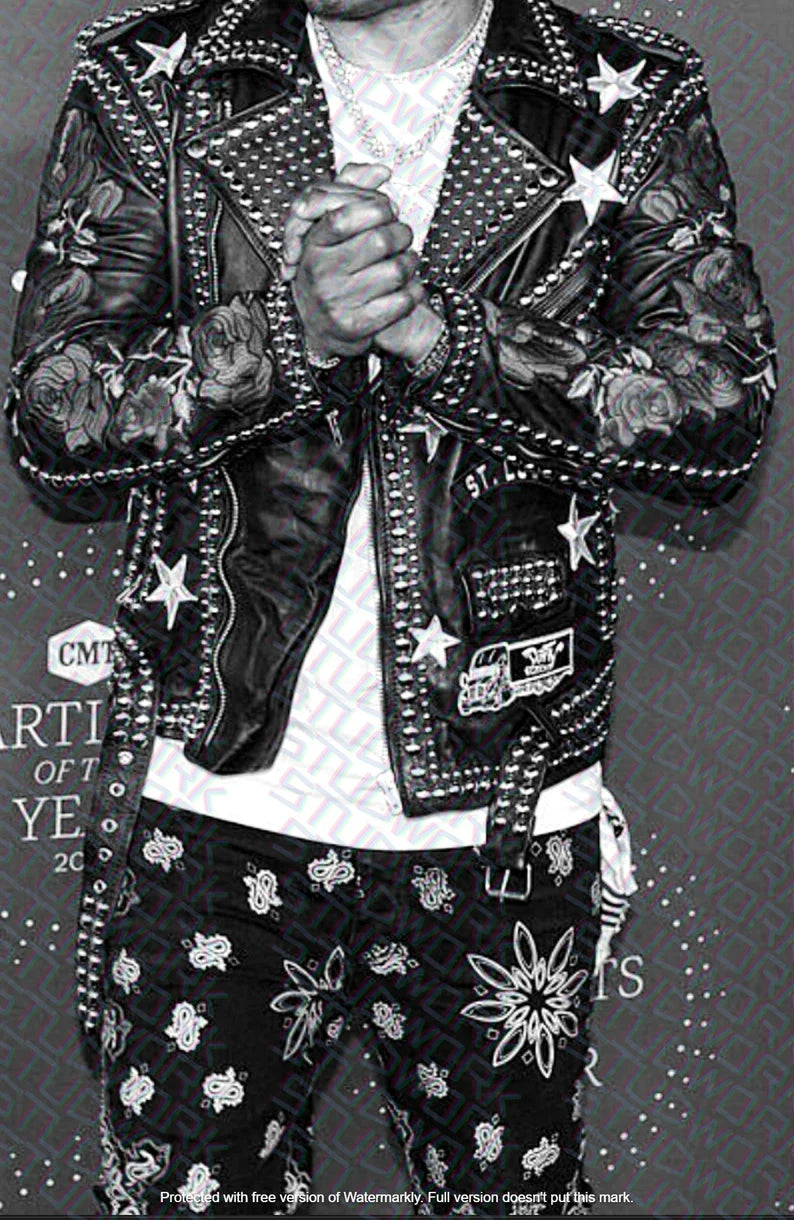 Made To Order Men's Style Studded Punk Fashion Pure Leather Motorcycle Brando Patches Jacket