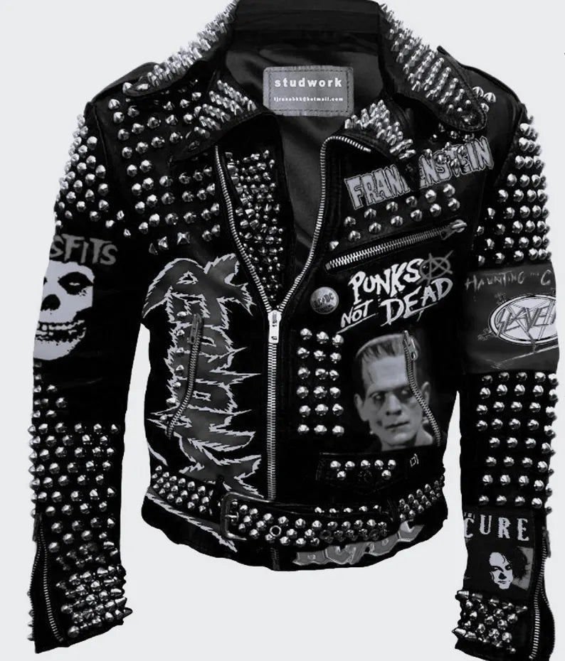 Embrace your bold, unique style with this one-of-a-kind Men's Black Leather Jacket. Featuring edgy silver studs, cool rocket patches, and a striking punk-steampunk vibe, this jacket is perfect for those who love to stand out. The high-quality leather provides both durability and comfort, while the artistic rocket patches add a fun and rebellious touch. Whether you're into punk, steampunk, or just love a mix of retro and modern flair, this jacket is sure to elevate your wardrobe.