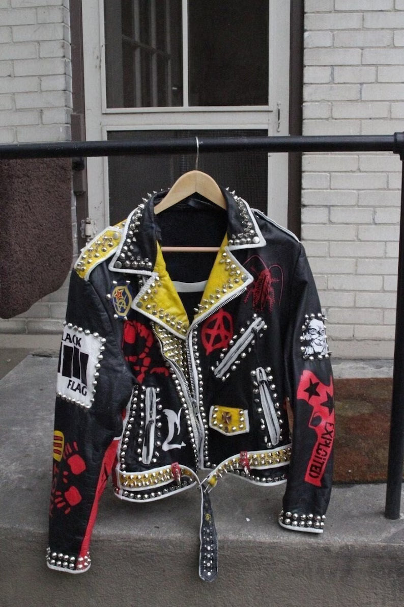 Motorbike Silver Studded Punk Jacket, Handmade Patches Jacket, Cowhide Leather Gothic Jacket, Steampunk Personalized Jacket,