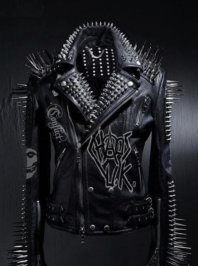 Punk Rock Gothic Patchwork Men's, Steampunk Spiked Studded, Chaos UK Patches Jacket, Biker Misfit Leather, Handmade Queen Sex Pistol Outfit,