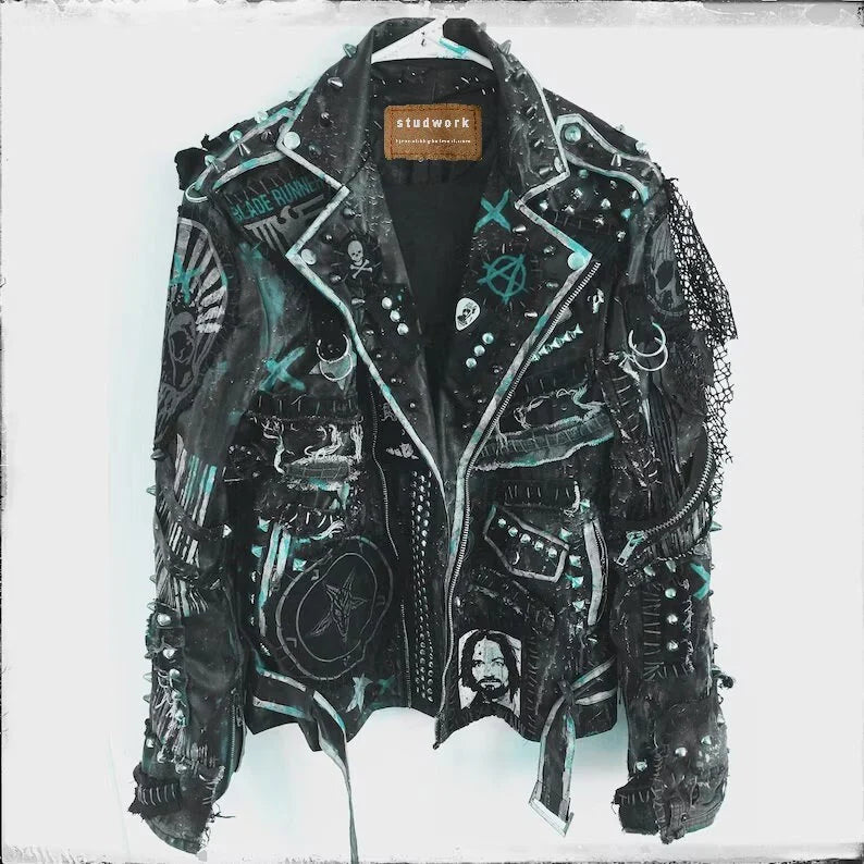 Punk Rock Patches Biker's Handmade, Blade Runner Studded Gothic Jacket, Rivets Studwork, Metal Solid Studs And Spikes, Patches Jacket,