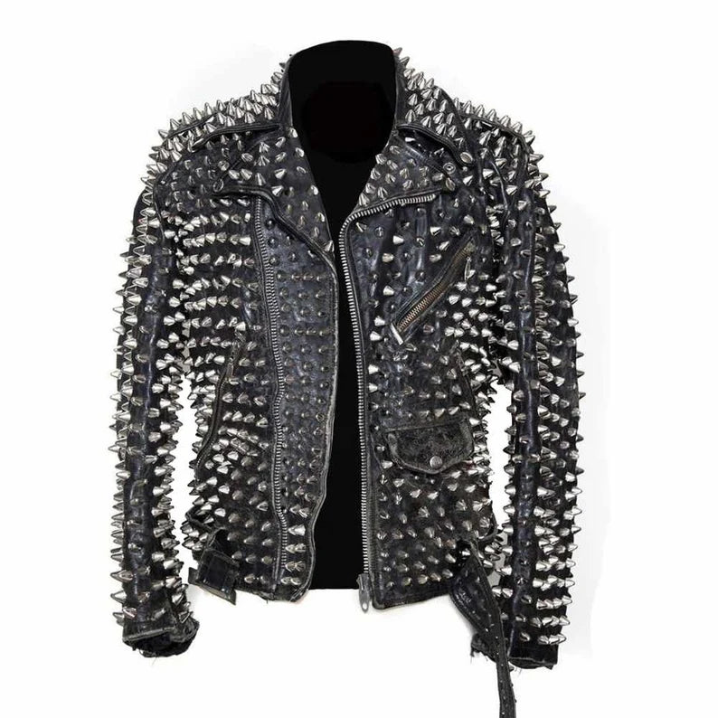 Studded Fashion Jacket Punk Women's Cow Leather, Silver Heavy Metal Spiked Stud Work, Biker Slim Fit Jacket, Studded biker Jacket, Spiked