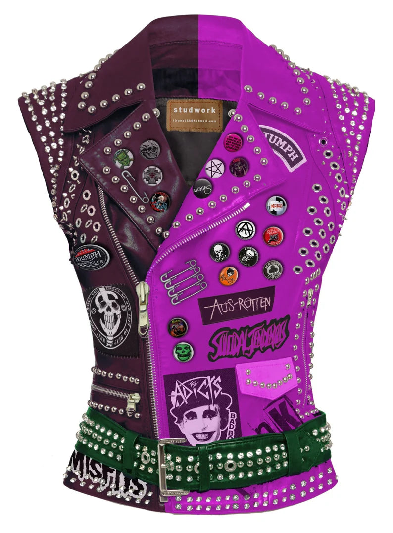 Two Tone Heavy Spiked Punk Rock, Aus Rotten Women's Handmade Vest, Brando Sleeveless Jacket, The Adicts Outfit, Leather Misfit Club Wear,