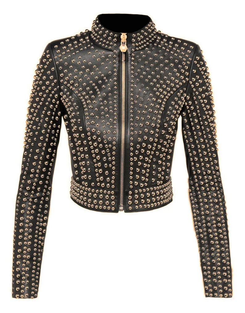 Studded Jacket made with 100 % Genuine Top Quality Cowhide Leather