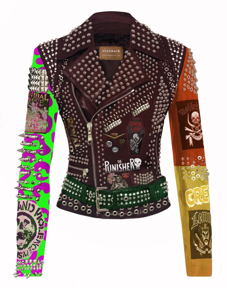 Women's Patches Heavy Studded Punk Rock, Multicolor Punk's Not Dead Jacket, Biker's Lemmy The Punisher Leather Steampunk, Gothic Jacket,